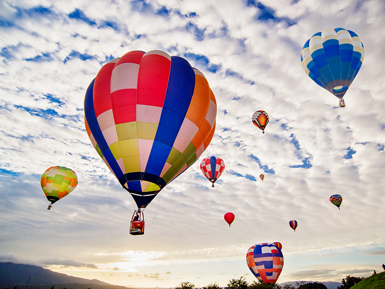 喜多方市の秋の風物詩。全国各地から約25機のバルーンが集結し、雄大な会津盆地での競技フライトを繰り広げる。離陸会場となっている「日橋川緑地自由広場」では色とりどりのバルーンが飛び立つ様子を見学できる。