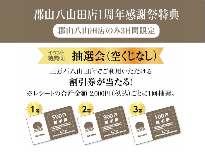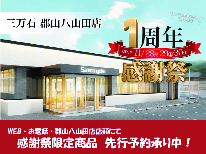 - 2025.11.27(木) 三万石郡山八山田店 1周年感謝祭 明日(11/28)開催!