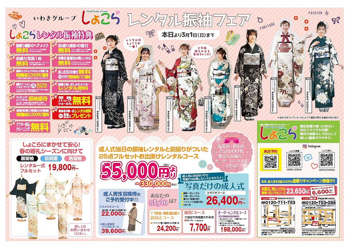 振袖専門店いわき福島店・郡山店同時開催 ! 振袖フェア3月1日(日)まで