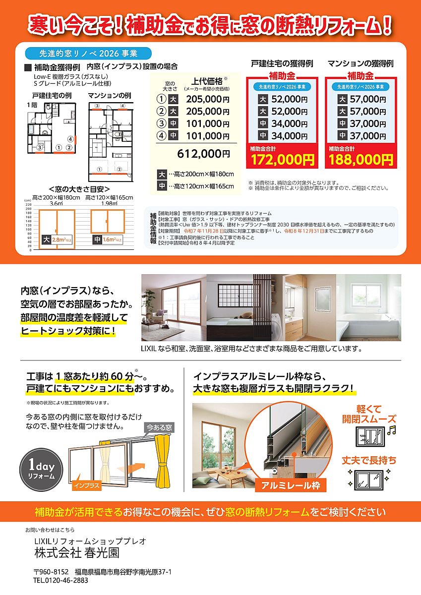 - 2026.01.27(火) これからの寒い冬に『窓リフォーム』で節電対策しませんか?