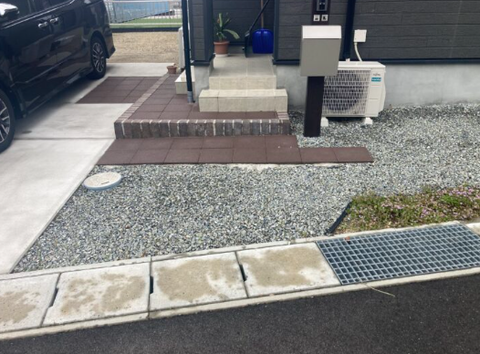 家周りが真っ暗なので、既存アプローチをおしゃれにリフォームし、植物を植えてライトアップと玄関まわりを防犯対策を兼ねて照明を設置したい、との御要望をいただきました。