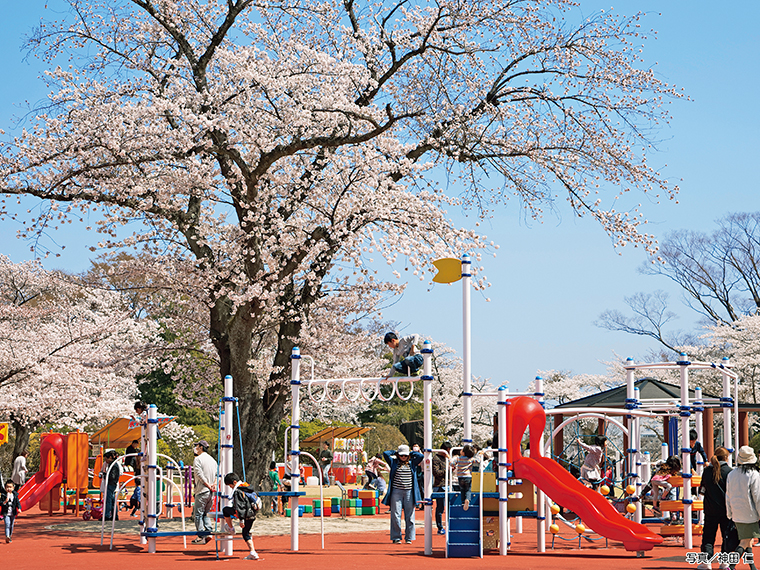 約200本のソメイヨシノと約340本のツツジを観賞できる、いわき市内で最も古い『松ヶ岡公園』。磐城平藩主・安藤信正公の銅像や子どもたちが自由に楽しめる芝生広場もあり。