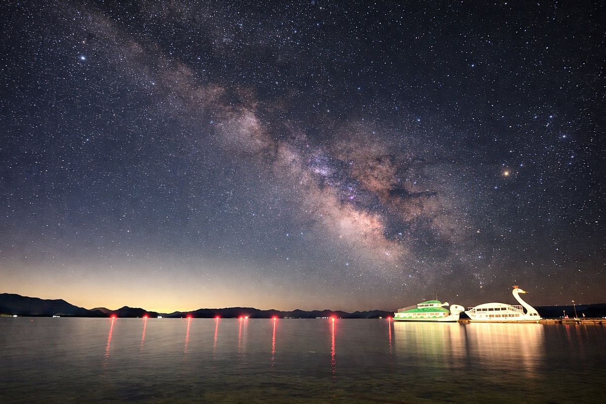 「スマイル最後の写真は、日曜日に撮影した猪苗代湖長浜から見た天の川の写真です。