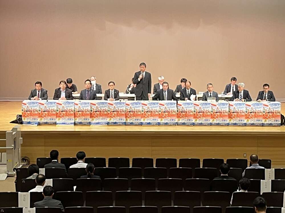 晩秋のふくしま路で健脚を競う「第37回ふくしま駅伝」の参加市町村会議が、10月10日(金)の午後、本宮市で開かれ、大会の内容や注意事項などの確認を行いました。今年の大会も、しらかわカタールスポーツパーク陸上競技場から福島県庁までの16区間96.3kmのコースで、オープン参加の北塩原村を含む51チームが参加します。尚、残念ながら、古殿町と飯舘村が不参加を表明しています。