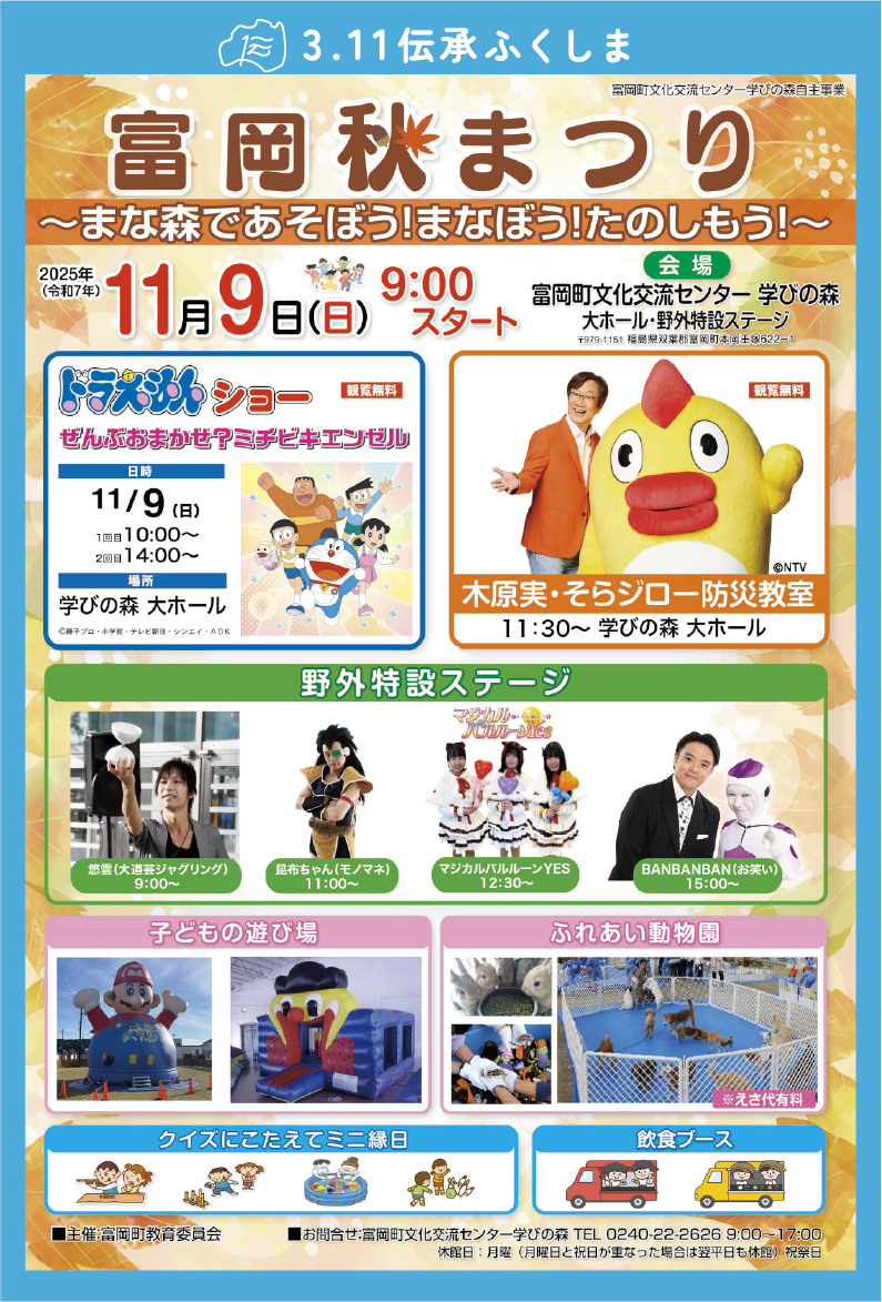 - 【イベント情報_11月】富岡秋まつり 2025〜まな森であそぼう!まなぼう!たのしもう!〜(3.11伝承ふくしま事務局)- 2025.10.28(火) 11:48