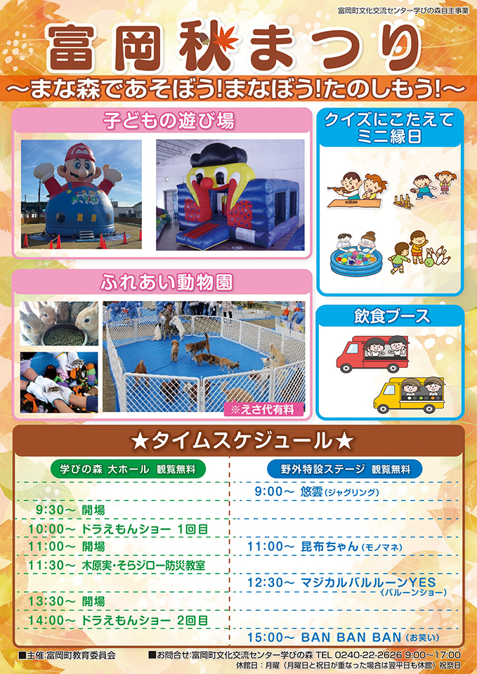 「富岡秋まつり-まな森であそぼう!まなぼう!たのしもう!-」を開催します。