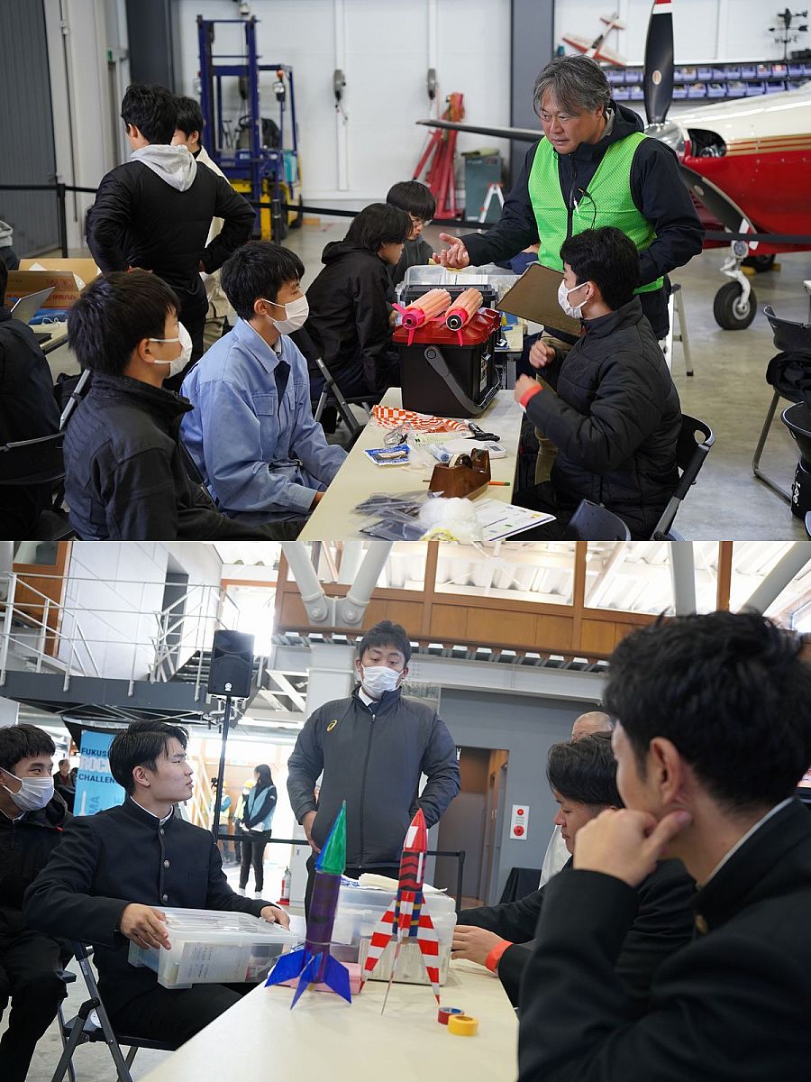 全員高校3年生。課題研究としてクラスメイト7人で取り組んだチームもありました。「高度とか滞空時間とか、目標数値があるんですけど。それをクリアするのが難しくて。その時間通りには行かないかもしれないから、プラスで何メートル追加したりとか。みんなで1つずつロケットを作って、その中で良いものを2機選んで持ってきました」とのこと。