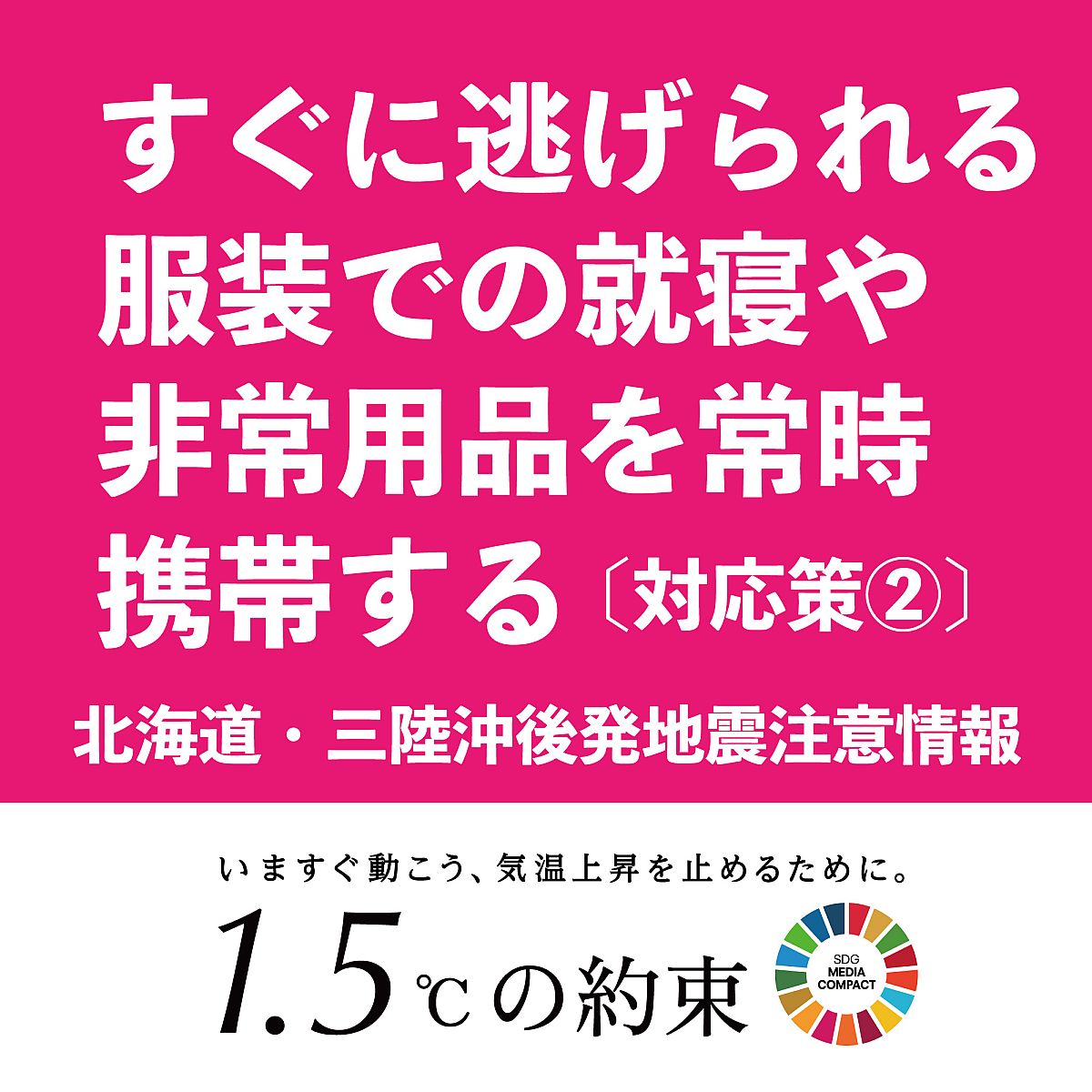 ② すぐに逃げられる服装での就寝や、非常持出品を常に携帯しておくなど、揺れを感じたり、津波警報が発表されたりした際に、直ちに津波から避難できる体制の準備、