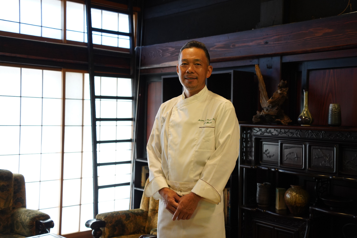 田子倉ダムのほど近くにある只見町石伏地区でフランス料理店「ガレット・エ・ポムポム」を営む平子さん。以前は東京でレストランを開いていましたが、2020年に10軒ほどが暮らす集落の古民家に移住し店をオープン、シェフとして腕を振るいながら自然あふれる只見暮らしを楽しんでいます。