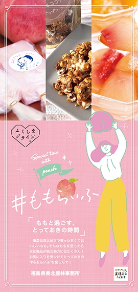 モモの6次化商品をまとめたパンフレット「#ももらいふ」を持ってお気に入りの商品を探しに出かけよう。