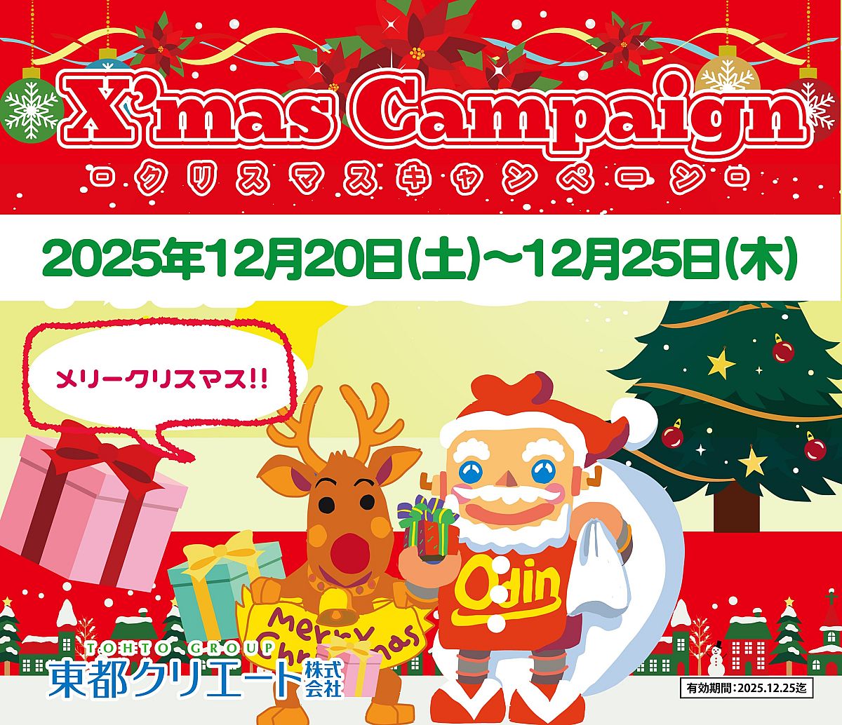 - 【オーディン喜多方店&郡山大槻店】クリスマスキャンペーン(東都クリエート株式会社)- 2025.12.19(金) 11:09