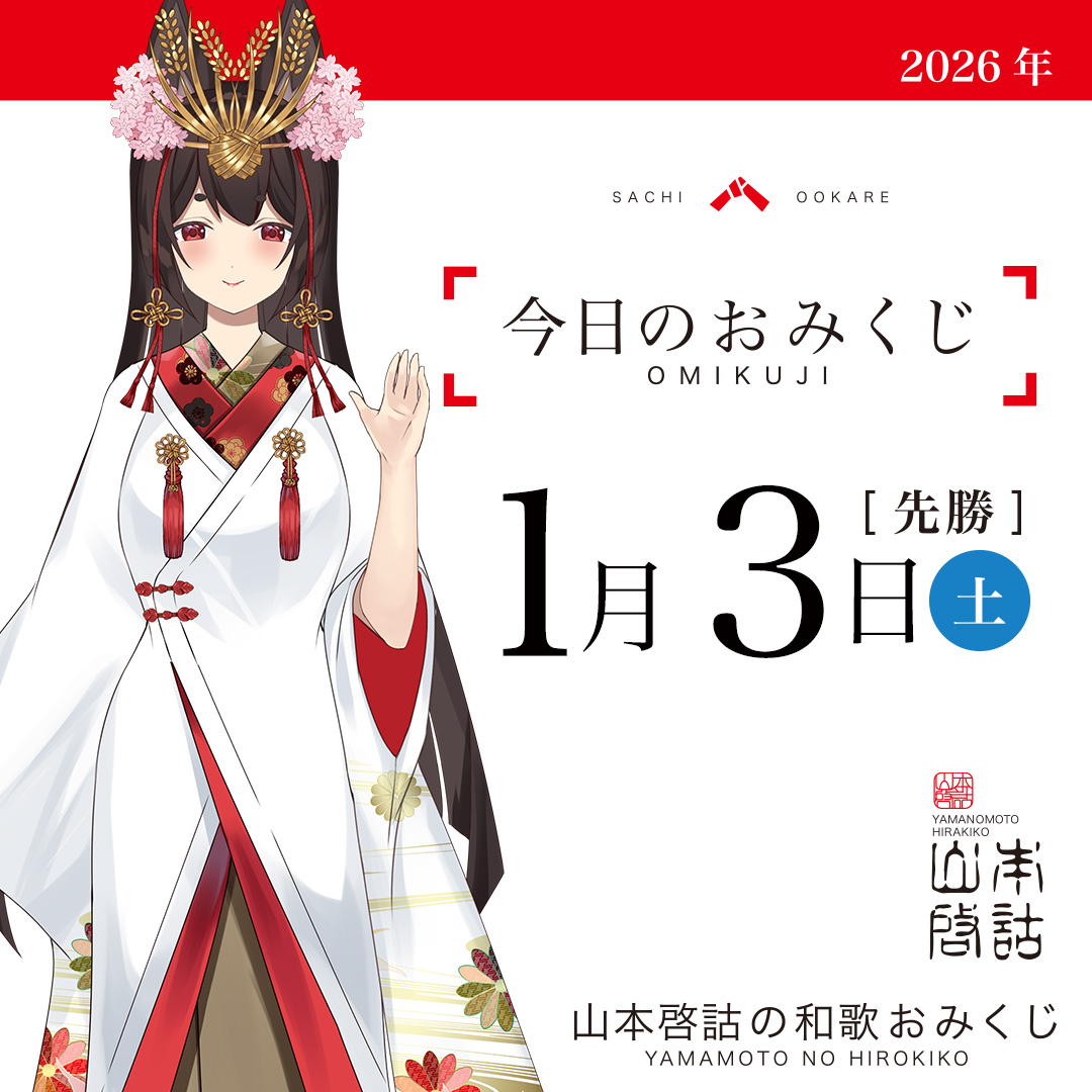 - [ 山本啓詁の和歌おみくじ ] 1月3日 土曜日(山本啓詁の和歌おみくじ)- 2026.01.03(土) 00:01