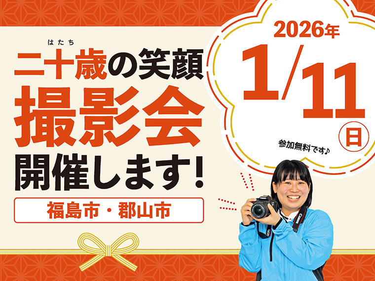 - 2026年も撮影会を開催!福島市・郡山市の式典当日に、二十歳の皆さんを撮影します(エス・シー・シー)- 2025.12.23(火) 18:00