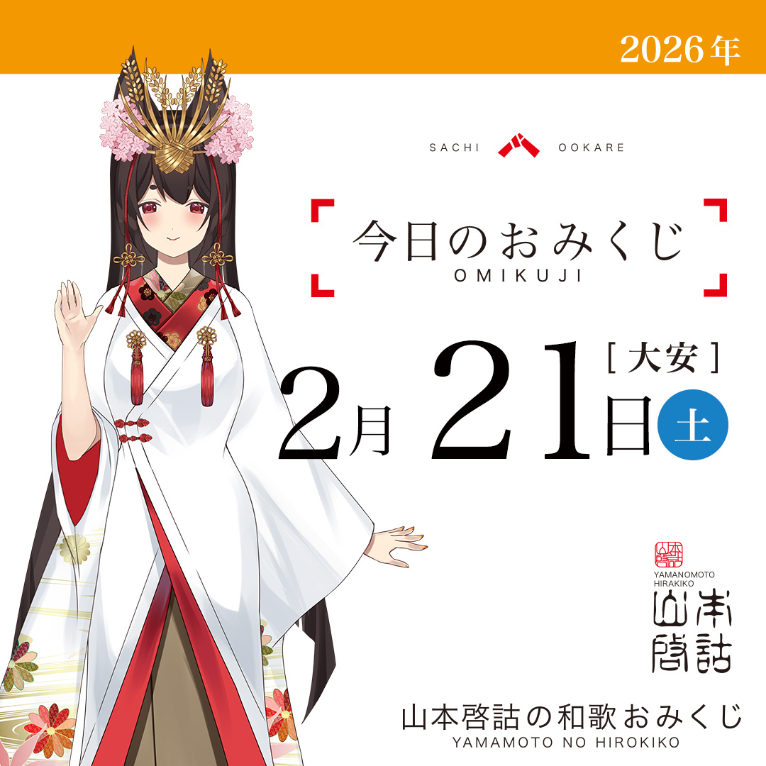 - [ 山本啓詁の和歌おみくじ ] 2月21日 土曜日(山本啓詁の和歌おみくじ)- 2026.02.21(土) 00:01