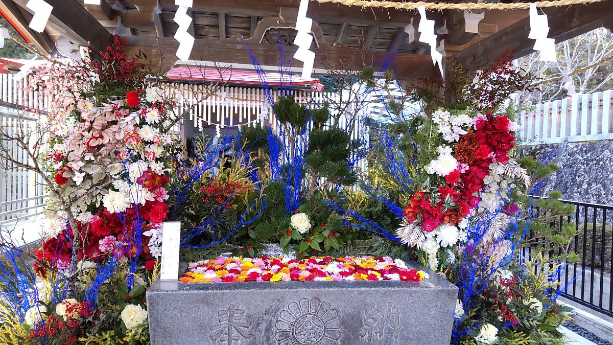 花手水もお正月、初詣にいらっしゃった皆さんを華やかにお迎えする準備ですね。