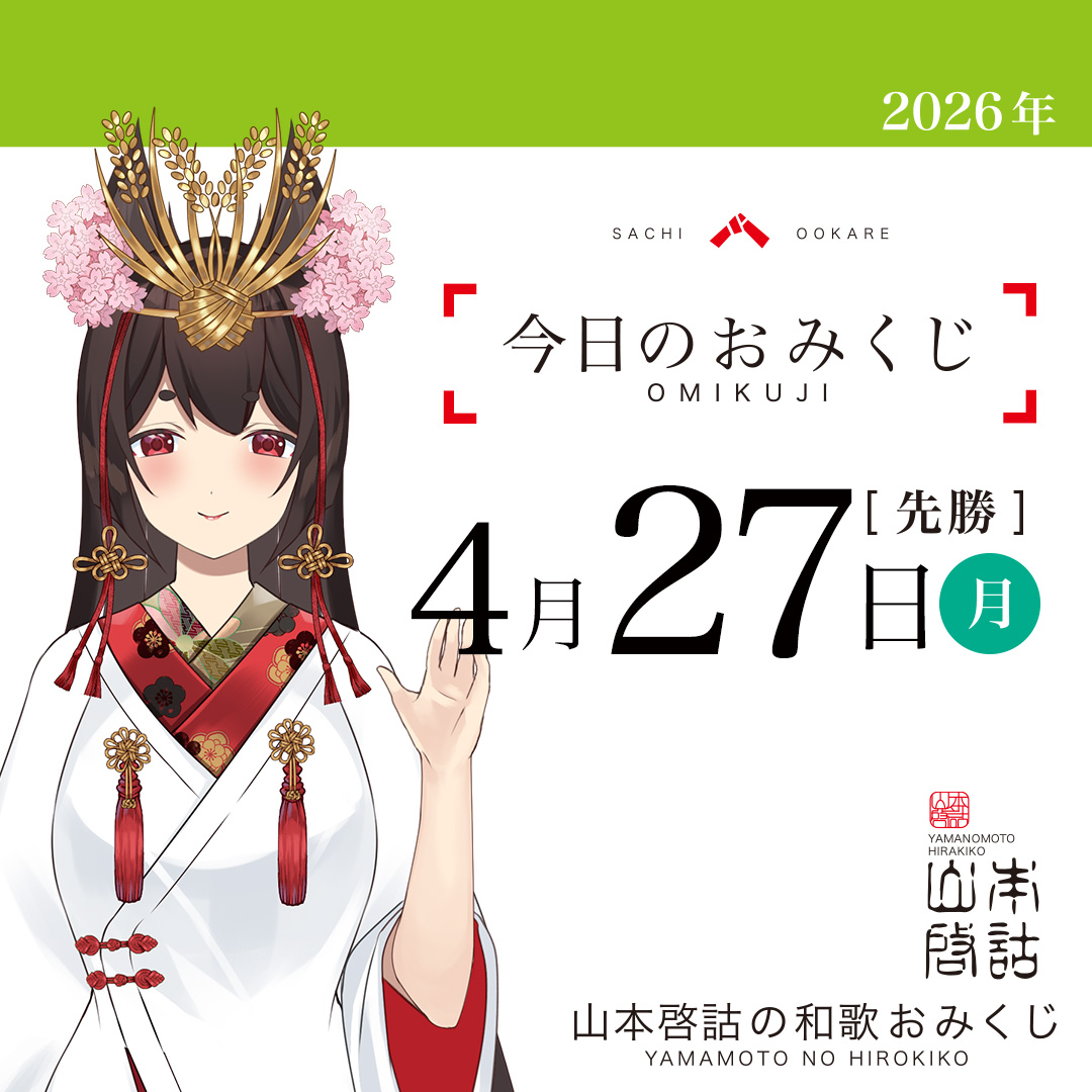 - [ 山本啓詁の和歌おみくじ ] 4月27日 月曜日(山本啓詁の和歌おみくじ)- 2026.04.27(月) 00:01