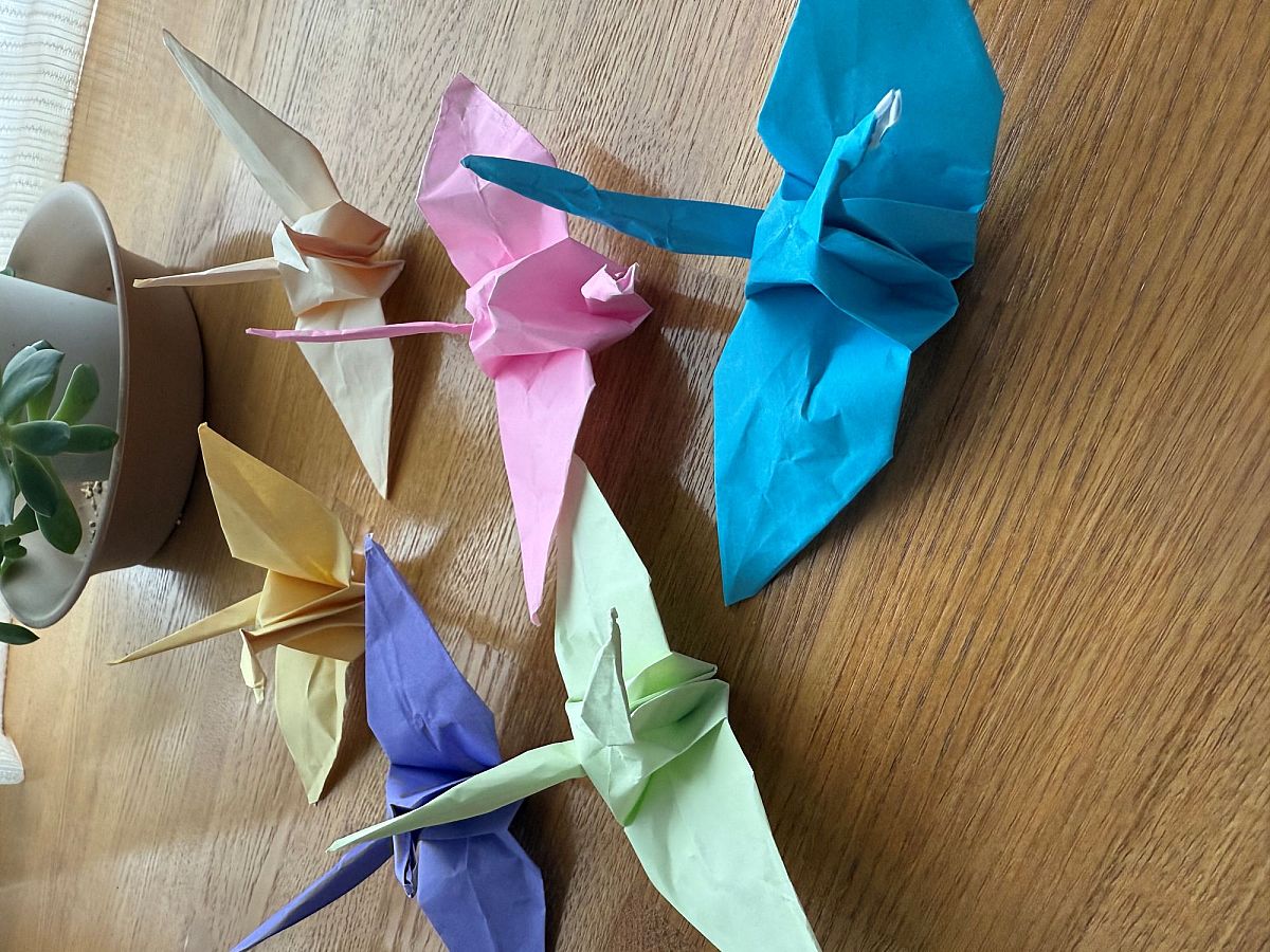 「お正月に泊まりに来ていた6歳の孫(男の子)が折った折り鶴です。