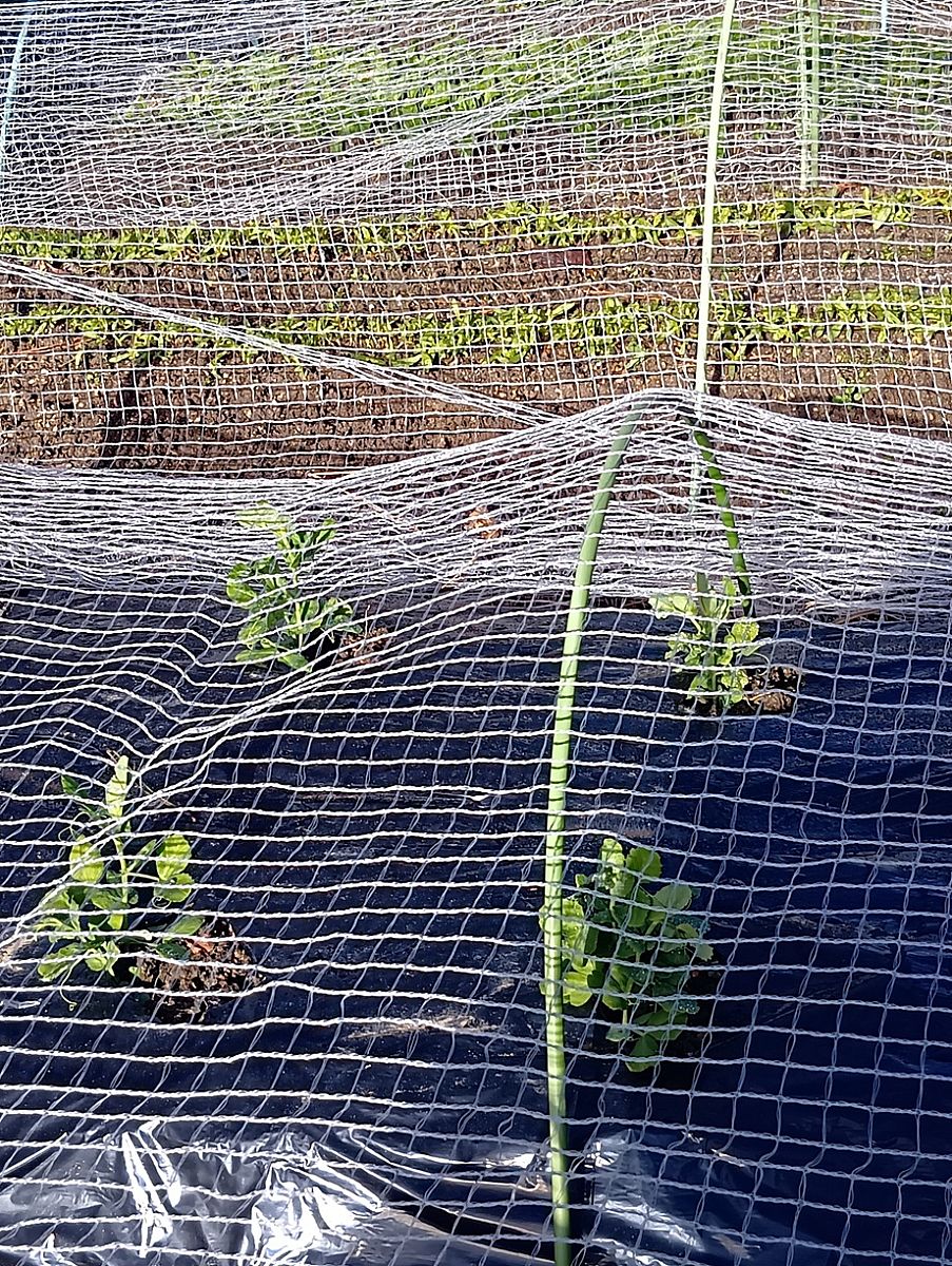 「順調な(スナップエンドウ)と(春菊)です。(春菊)は蒔き過ぎもあってか、全然育っていません。」