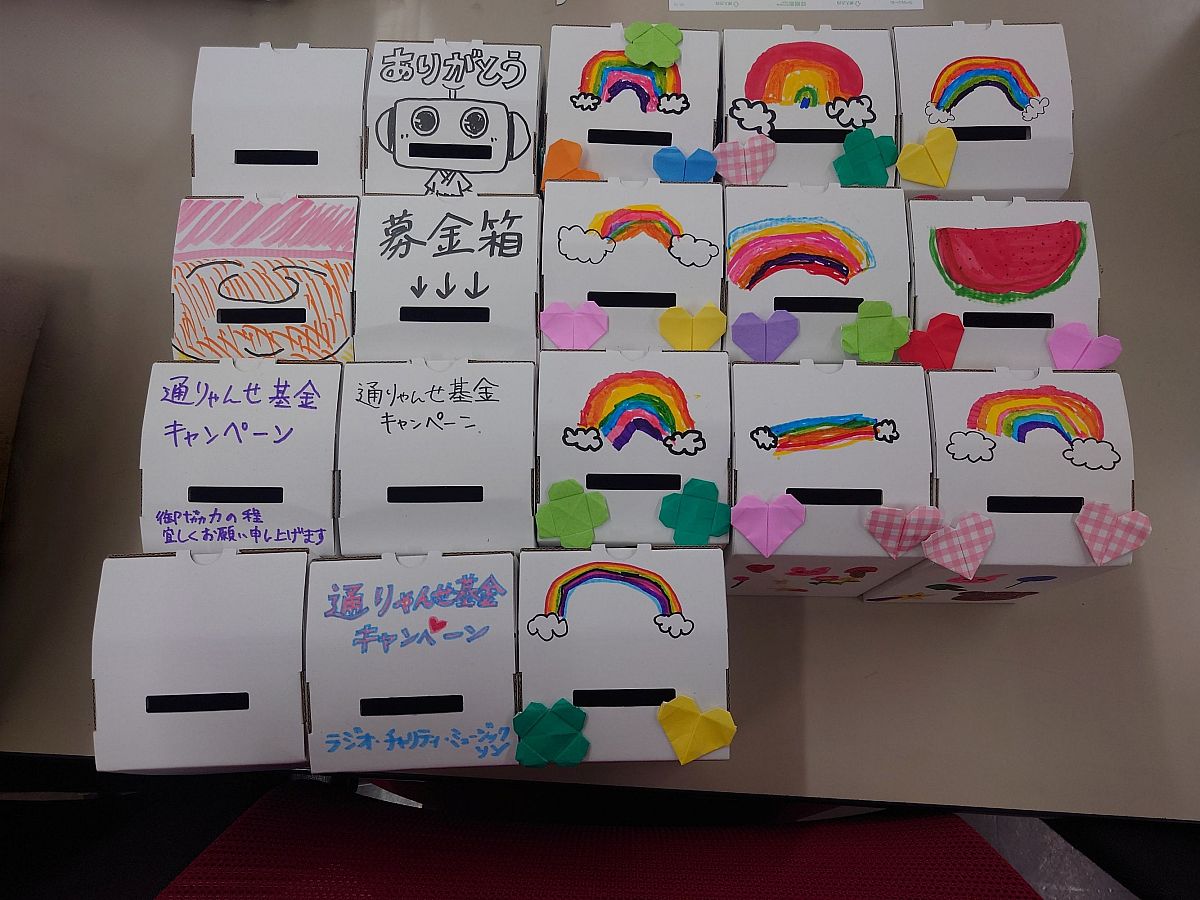 今年度展開しています、通りゃんせ基金キャンペーンから登場した募金箱は、紙製です。
