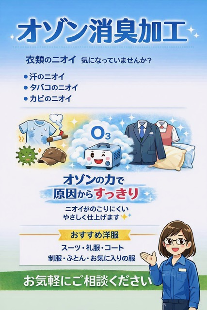 - 匂いでお困りの方にオゾン脱臭加工をおすすめします【クリーニング北沢】(Postbox-newsR Provided by Like-s)- 2026.02.21(土) 08:00