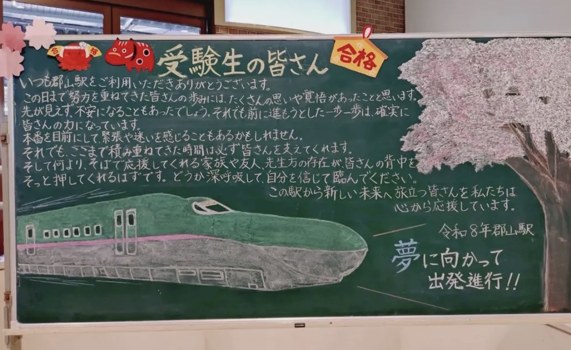 受験生の皆さんに向けたエールが郡山駅にありました。