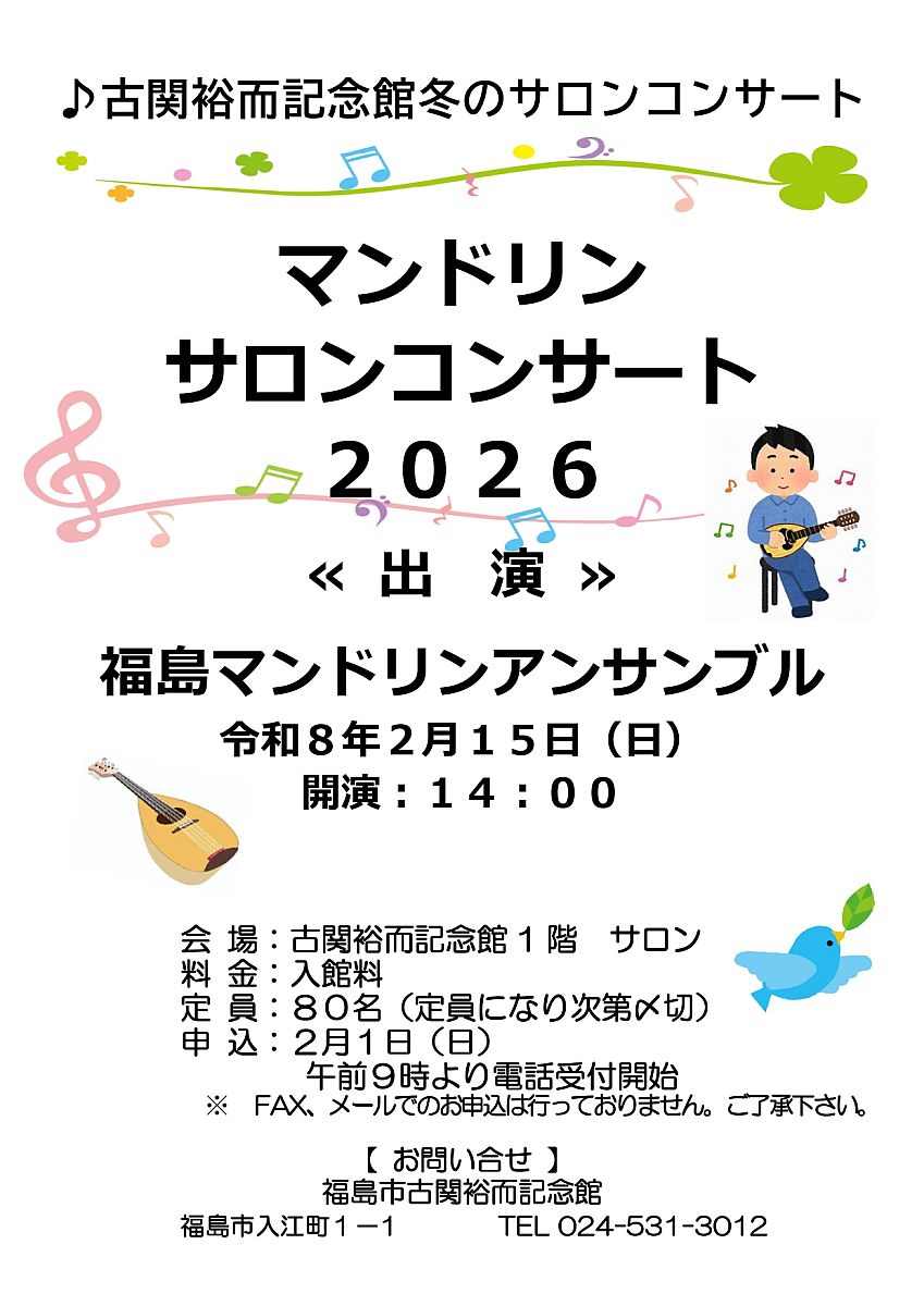 【2/1申込開始】古関裕而記念館「マンドリンコンサート2026」開催