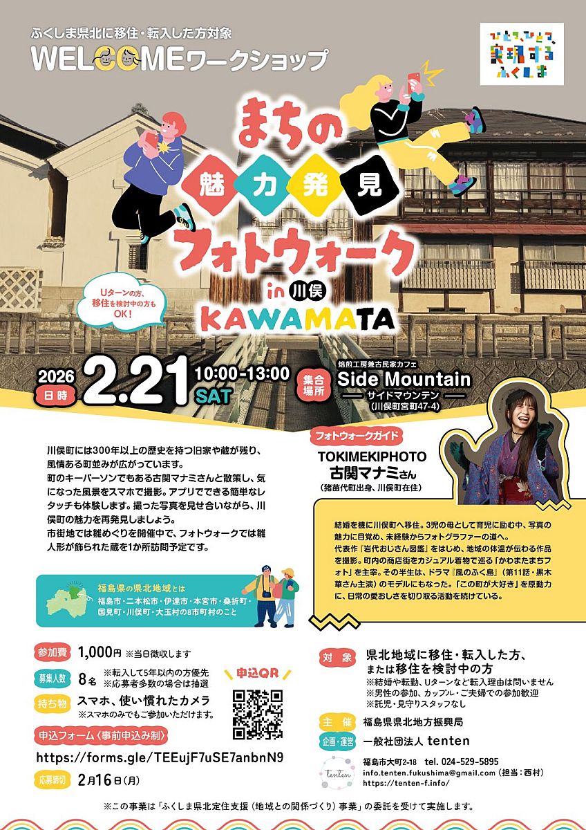 - 【移住・転入者対象】WELCOMEワークショップ「まちの魅力発見フォトウォーク in 川俣」 (Postbox-newsR Provided by Like-s)- 2026.02.02(月) 07:00