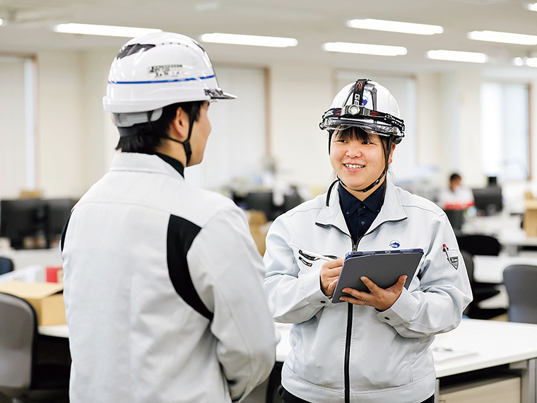 空調や水道などの設備工事の仕事は、完成した建物の中ではほとんど見えなくなってしまうものの、人々が快適に過ごすために必要不可欠な業務。インフラを整え、守っていく仕事は、まさに社会貢献そのもの。
