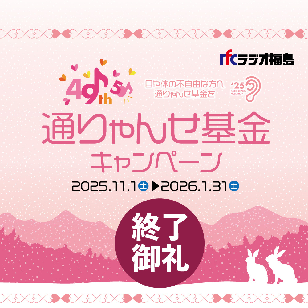 - 【終了御礼】「第49回通りゃんせ基金キャンペーン」へのご協力、誠にありがとうございました。(ラジオ福島)- 2026.02.02(月) 11:36