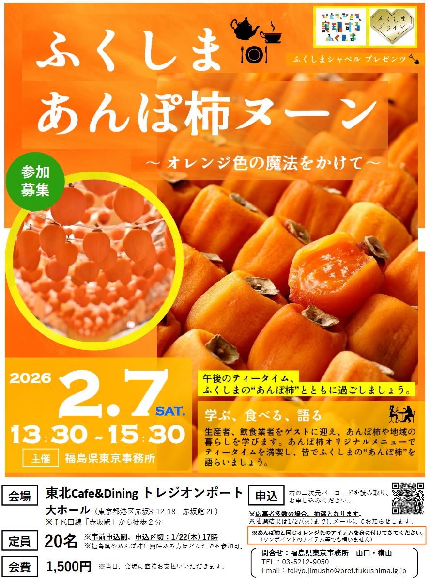 - 「ふくしまあんぽ柿ヌーン」2/7東京・東北Cafe&Dining トレジオンポートで開催!!(ラジオ福島)- 2026.02.04(水) 12:47