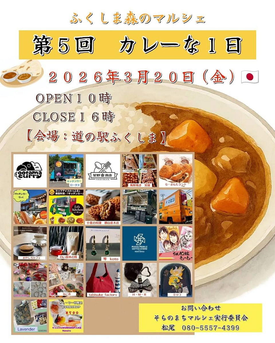 - 3月20日 道の駅ふくしまで「カレーな1日」開催 個性的なカレーが大集合!(Postbox-newsR Provided by Like-s)- 2026.03.03(火) 07:00
