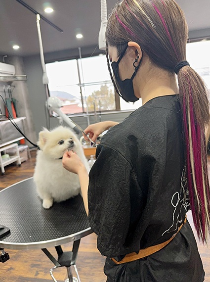 猫専門のトリマーも在籍し、猫のケアにも力を入れる。大型犬の受け入れも可能。