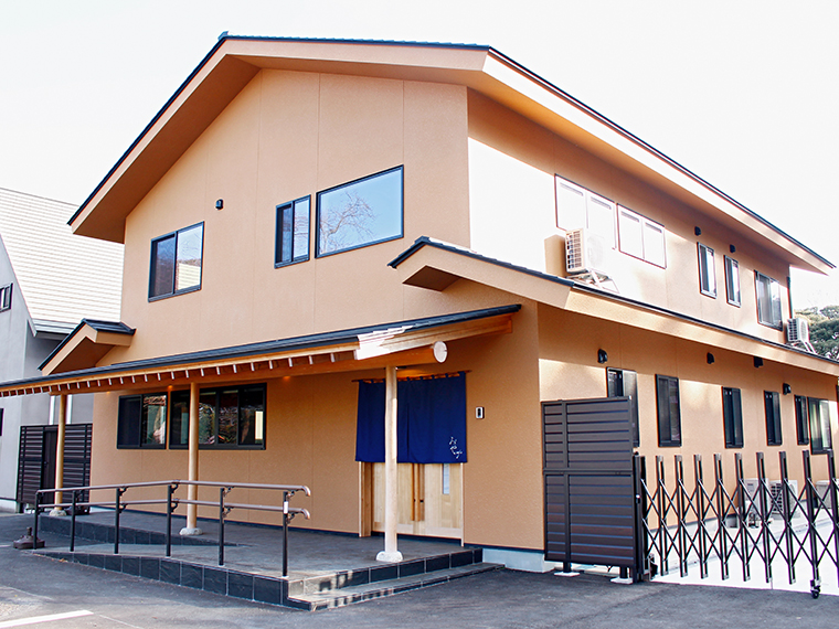 JR植田駅から徒歩5分の立地もうれしい。和風の外観と一枚板をぜいたくに使用した内装に癒やされる。