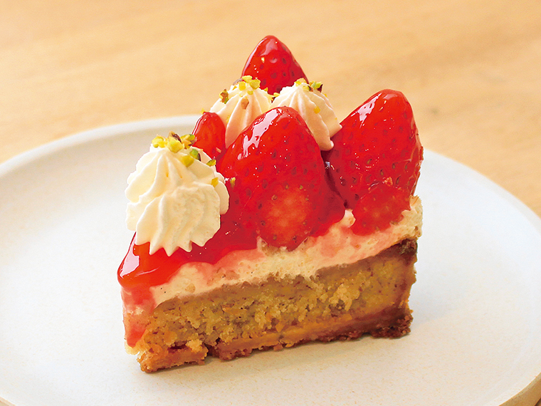 会津エリアを中心に展開する老舗菓子店『太郎庵』の「いちごタルト」は、鏡石町産の大粒いちごが贅沢にのる。しっとり食感のこだわりの生地には、皮付きアーモンドプードルを入れ、芳醇な香りが引き立つように仕上げた。甘さ控えめの生クリームとも合う。販売状況は各店へ確認を。