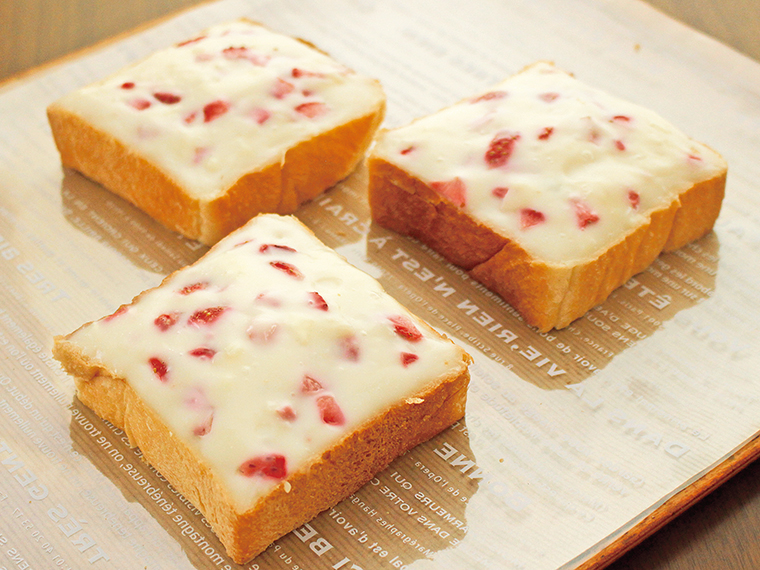 福島市の『Rusk(ラスク)』が福島市内の農家から仕入れる新鮮ないちごを使用した「クリームBOX」は、5月上旬までの季節限定。やさしい甘さのミルククリームにカットした生のいちごを混ぜ込むので、香りと甘酸っぱさが引き立つ。