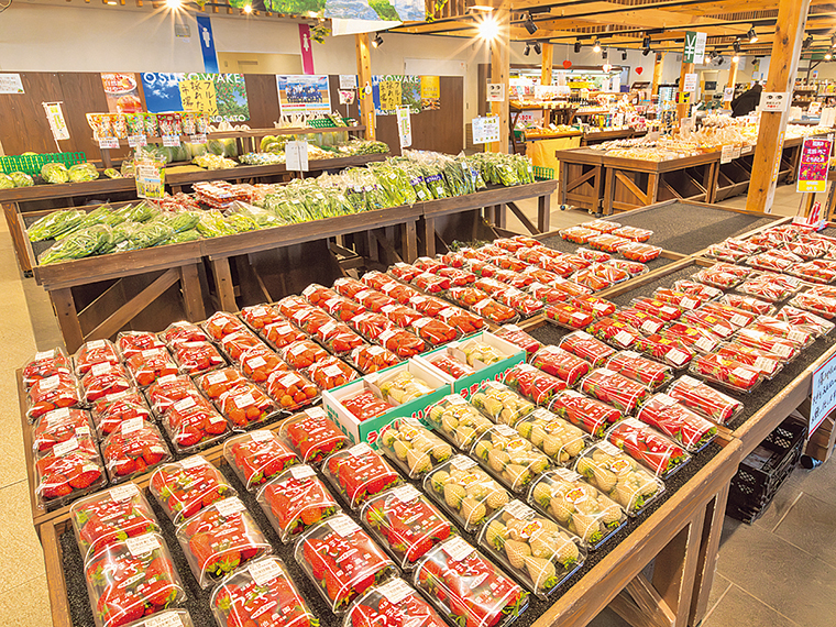 例年2月から3月にはいちごが旬を迎え、地元国見町や伊達市、桑折町の生産者が育てた新鮮ないちごが並ぶ。イチオシの「ゆうやけベリー」や定番の「とちおとめ」、「おいCベリー」、「紅ほっぺ」など、多い時には最大10種類がそろうので食べ比べも。