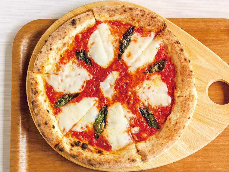 「マルゲリータ」はバジルとトマト、モッツァレラチーズのピッツァ。シンプルな具材の相乗効果で、深い味わいが楽しめる。