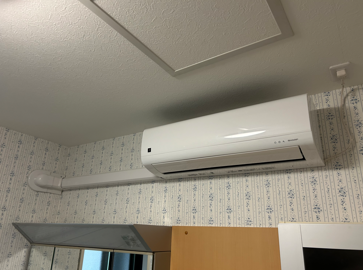 打ち合わせを重ねる中で、「どうせなら夏場も快適に過ごせるようにしたい」とのお話になり、洗面脱衣室にエアコンを設置するプランも併せてご提案しました。冷暖房兼用のエアコンなら、冬は暖房・夏は涼風と、一年を通して快適な温度環境づくりに役立ちます。