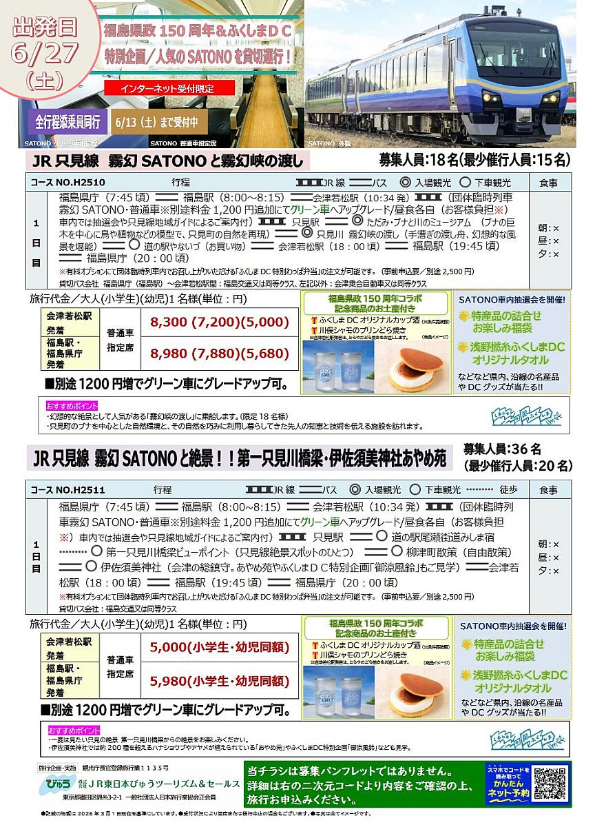- 【福島県政150周年&ふくしまDC特別企画】 JR 只見線霧幻SATONOツアー3/26から販売開始(ラジオ福島)- 2026.03.25(水) 11:03