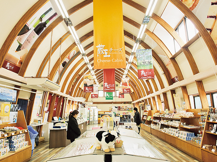 「チーズキャビン」は蔵王チーズや乳製品の他、自家製アイスやホエイを使ったオリジナルドリンク「モルク」が味わえる。すっきりとした甘さが特徴。チーズ料理が味わえる飲食店もある。