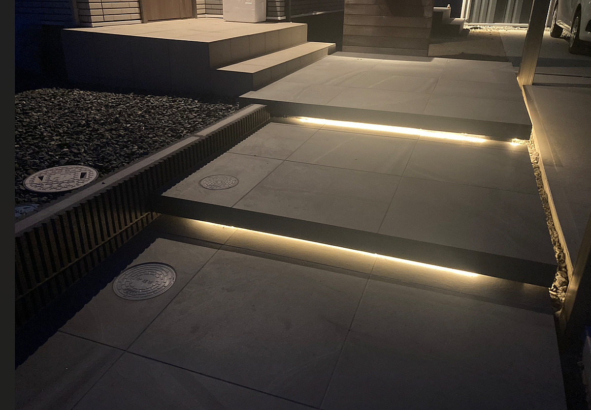 《蹴込み部分のライン照明で夜も安心・美しいアプローチ》