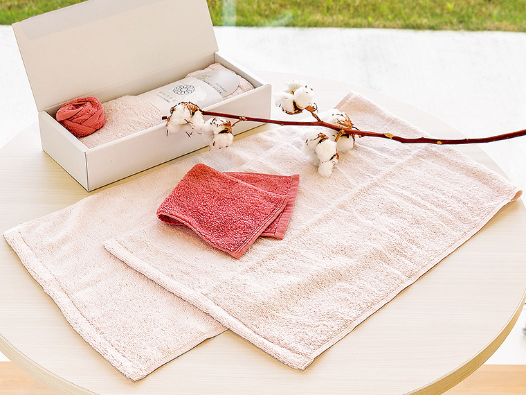 「超無撚糸「わたのはな」ピンクタオルセット」(2,970円)。