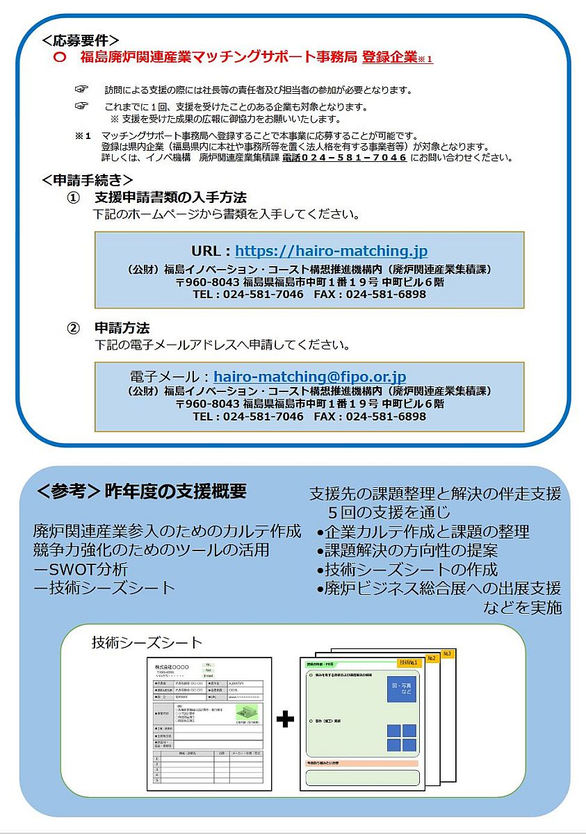 廃炉関連産業への参入・事業拡大に向け 競争力強化をサポート 支援対象企業募集中