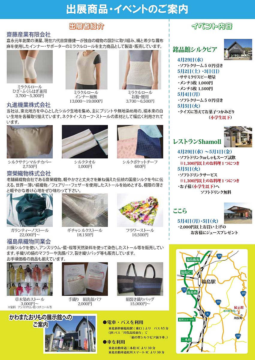 【4/29~5/5】道の駅かわまたで「かわまたシルクフェスティバル」開催 川俣シルクの展示販売