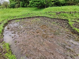 ※代掻きは、田植え前の大事な作業で、土を丁寧にかき混ぜて土の表面を平らにすることです。