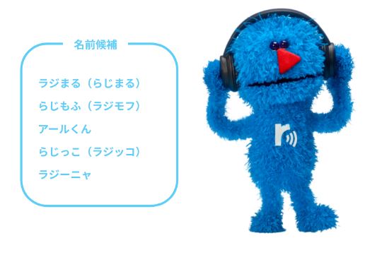皆様に親しまれるキャラクターになることを願い、radikoに関わるスタッフが考案した100を超える名前候補案の中から、民放ラジオ各局のみなさんに投票頂き、選び抜かれた5つの候補案が決定しました。