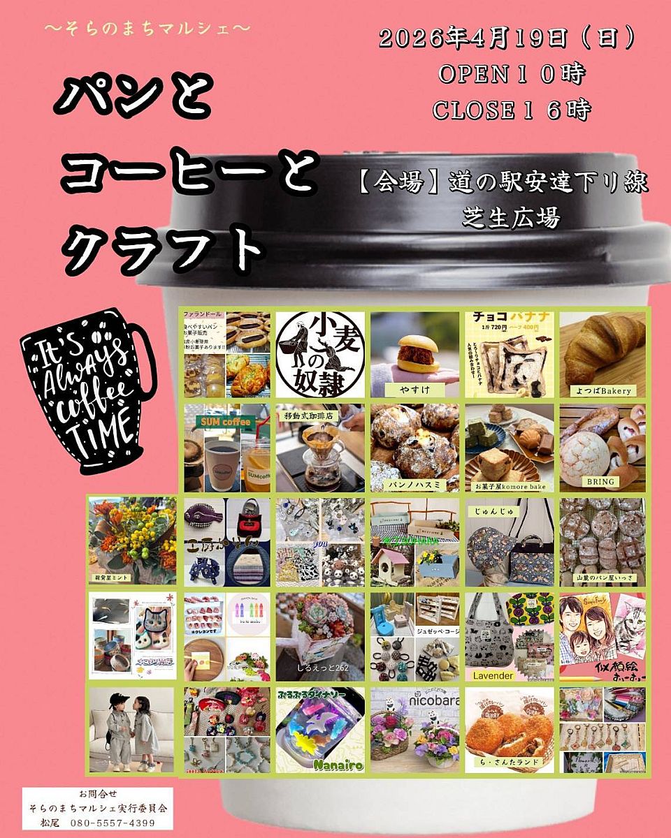 - 2026.04.08(水) 【4/19】県内外からおいしいパンが集合「パンとコーヒーとクラフト」道の駅安達で開催