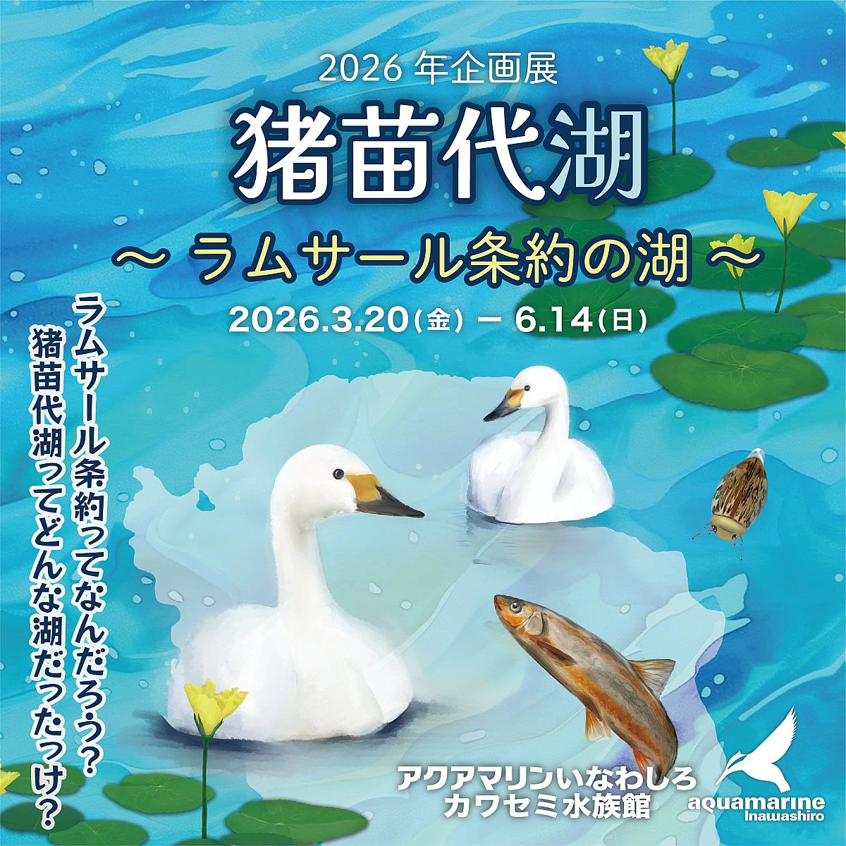 アクアマリンいなわしろカワセミ水族館は、福島県政150周年記念事業2026年企画展「猪苗代湖〜ラムサール条約の湖〜」を開催します。