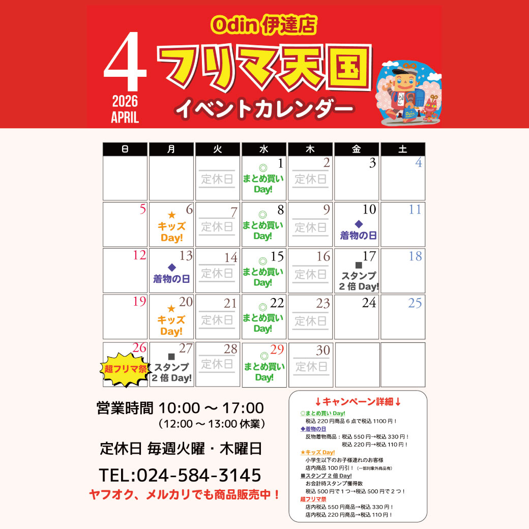 - 2026.04.06(月) オーディン伊達店×フリマ天国