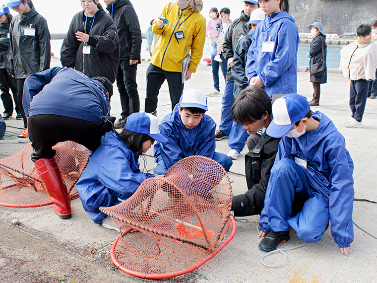 福島県の海の仕事を実際に体験することで水産業への興味関心を高め、将来の漁業就業者確保につなげる取り組みとして開催する「ふくしま海の仕事体験」。2026年3月15日にはいわき市江名港にて『いわきのかご漁を体験しよう!』が開催されました。